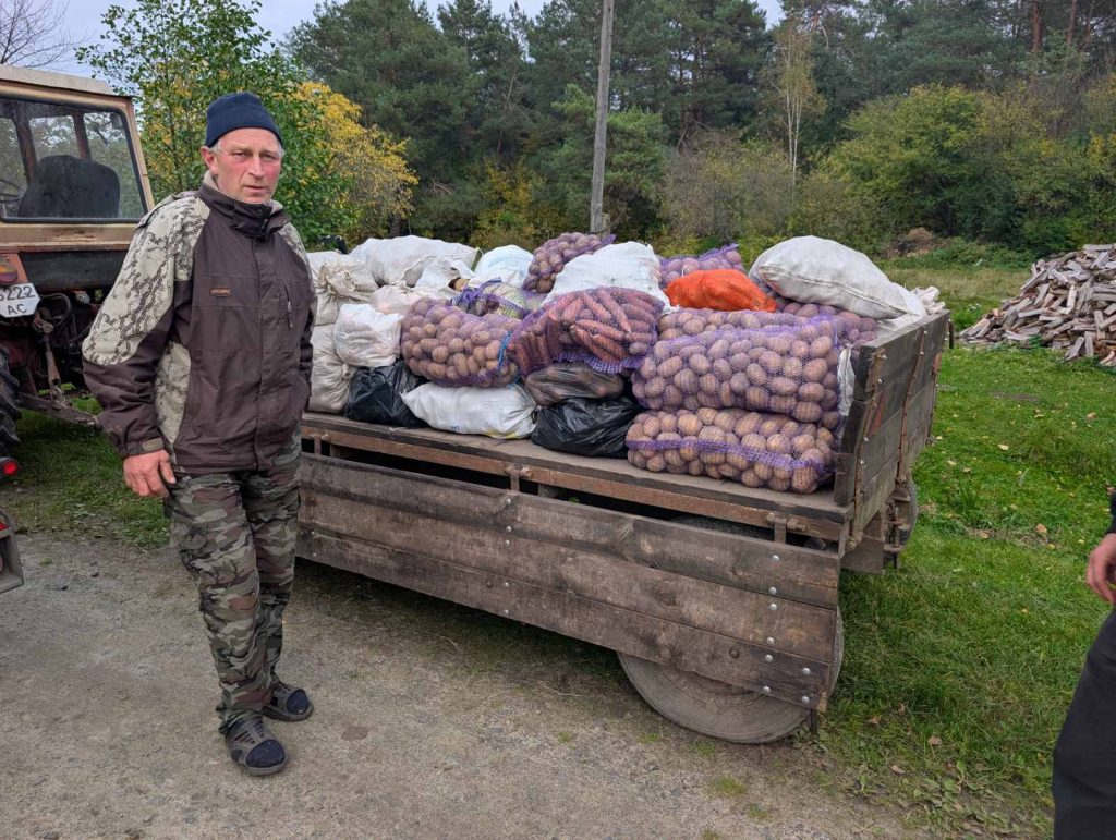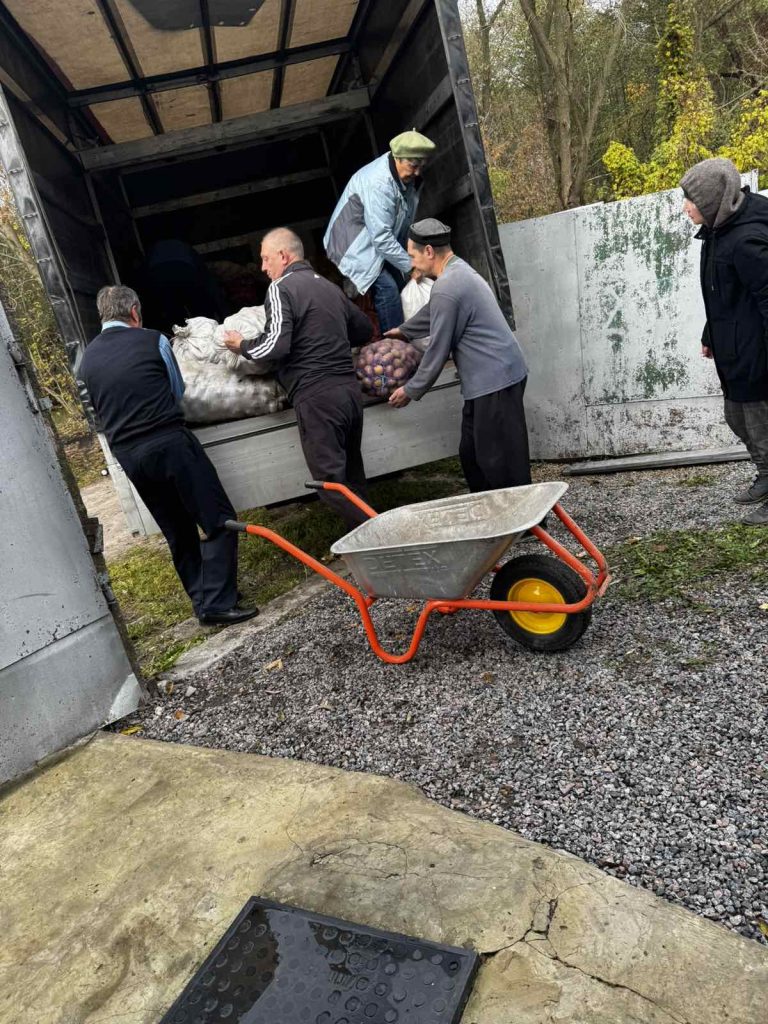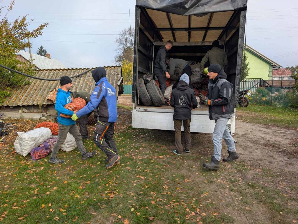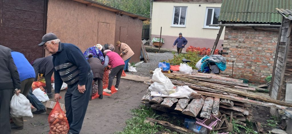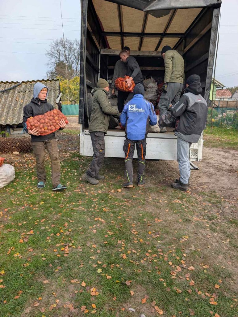 Auf dem Bild sehen sie die Lebensmittelversorgung, wo Kartoffeln gesammelt werden, um sie dann mit unserer finanziellen Unterstützung in die Kriegsgebiete weiterzuleiten, wo die Zustände unvorstellbar sind.